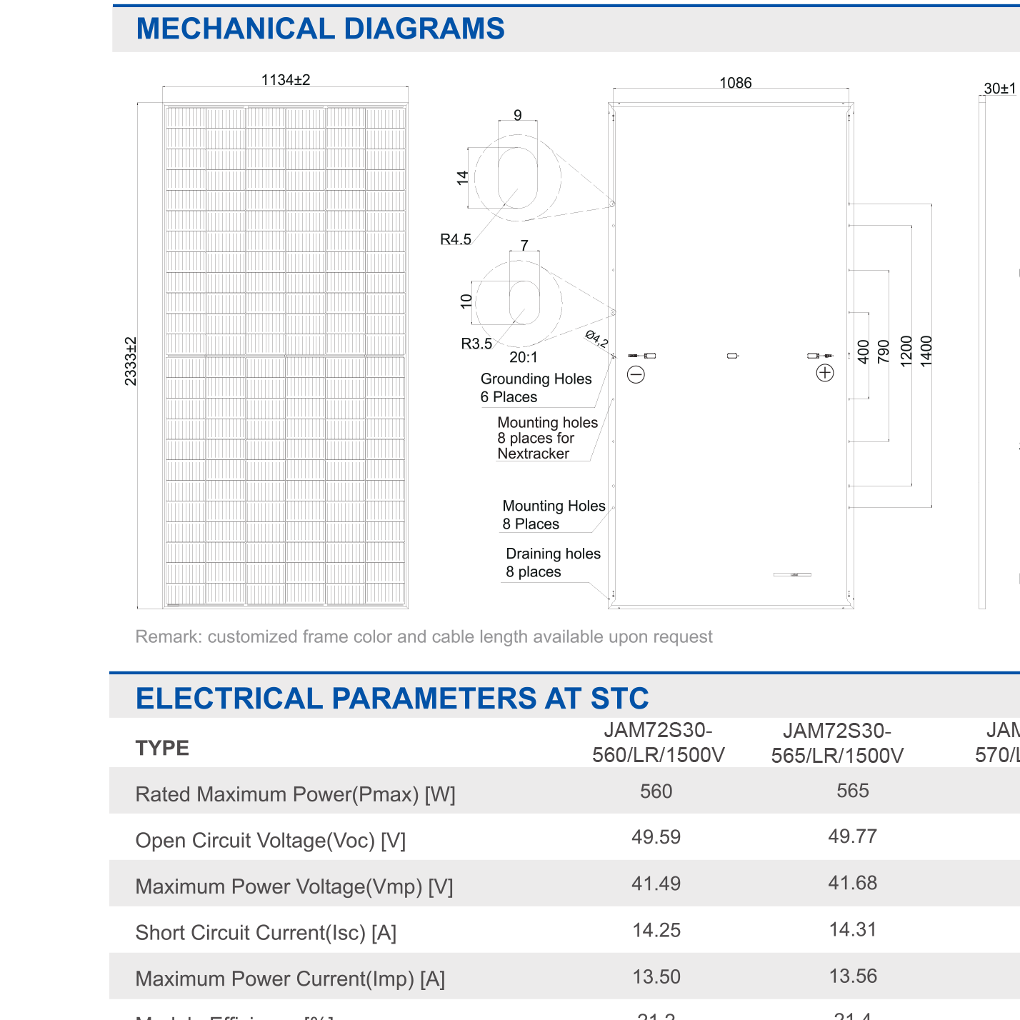 Part No for JA Solar 560W: JAM72S30-560/LR/1500V